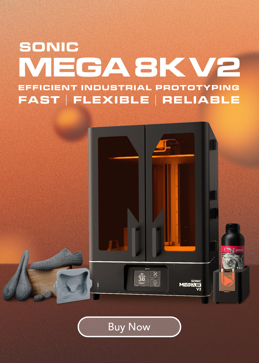 Compared to traditional CNC or injection molding, Sonic Mega 8K V2 can quickly produce a small batch of prototypes at just a fraction of the cost. Validate and refine your designs early, ensuring reliable products before committing to larger investments with full-scale manufacturing.